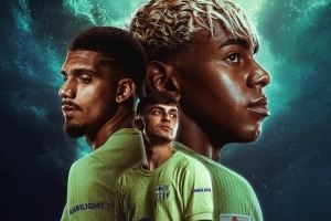 巴萨发布西甲首轮海报:亚马尔、阿劳霍、佩德里出镜
